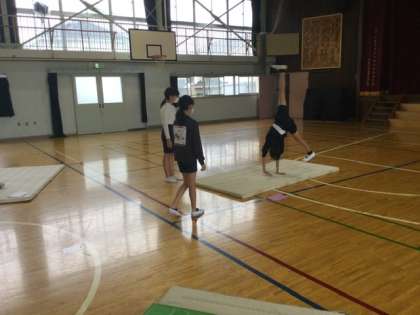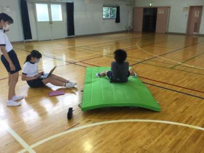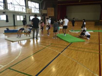 4校時、体育館で器械運動の学習です。