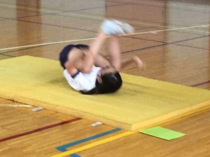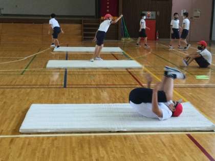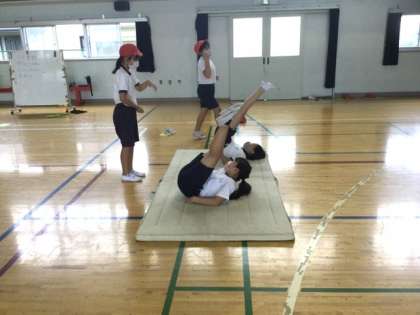 3校時、体育館でマット運動です。