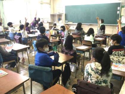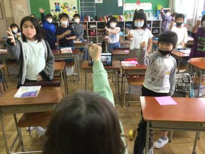 4校時の初め、オンラインの子も参加してジャンケン大会をしていました。