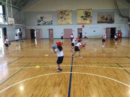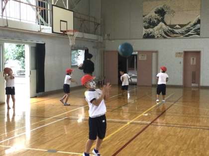 ボールを上に投げ、落ちてくるまでの手を5回叩き、ボールをキャッチします。