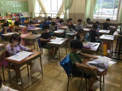 1校時、数の並び方の復習問題に取り組んでいます。