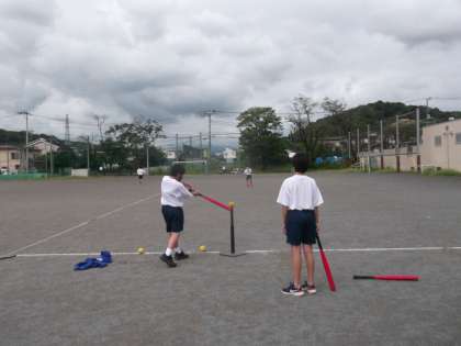 中1の体育はTボールです。