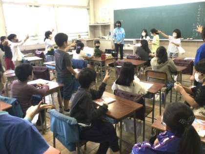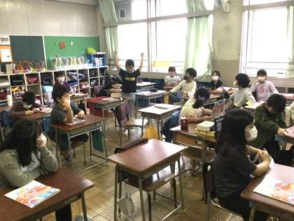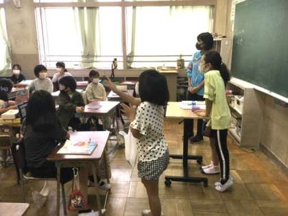 クラスの子が作った折り紙作品のプレゼントの当選者を決めていました。