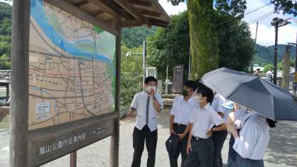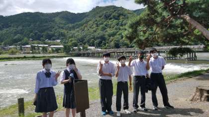 ガイドさんに、嵐山の説明や美味しい昼食場所を紹介してもらっています‼️