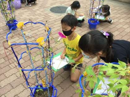 音楽の音探しや生活科で朝顔観察をしました。
