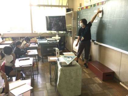 1校時、繰り下がりのある筆算を学習しています。