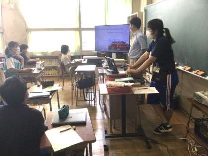 2校時、クイズをしています。