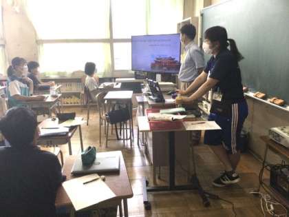 タブレットは、話し合い活動や発表、オンライン授業でも有効に活用しています。