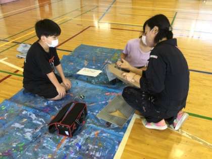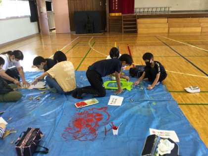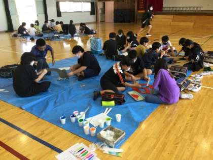 2クラス合同で作業をしています。