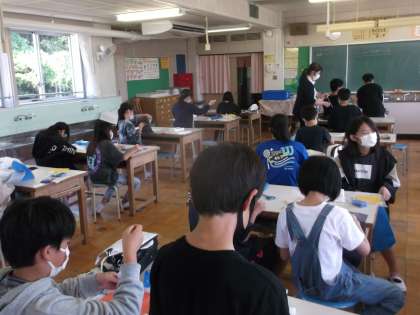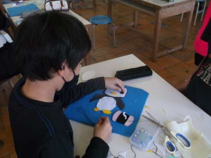 ミシンの学習の前に、自分のデザインしたものを縫い付けています。
