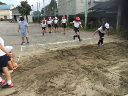 走り幅跳びの計測をしていました。