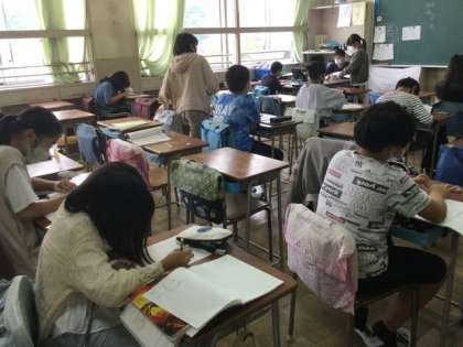 3校時、三角形の面積を求める課題に取り組んでいます。