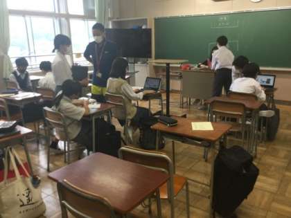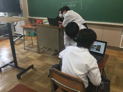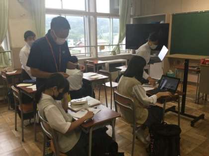 1校時、スクールファームで作ったトマトを使った創作料理の発表準備をしています。