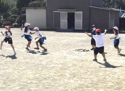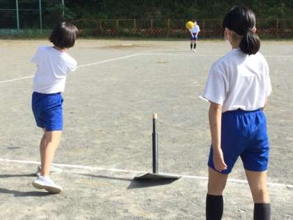 中学部のソフトボールや小学部低学年のゲーム活動の様子です。