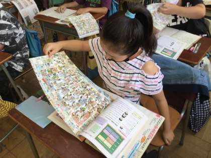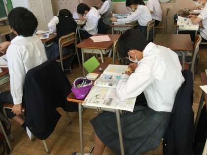 社会科では、資料を活用した授業が行われていました。