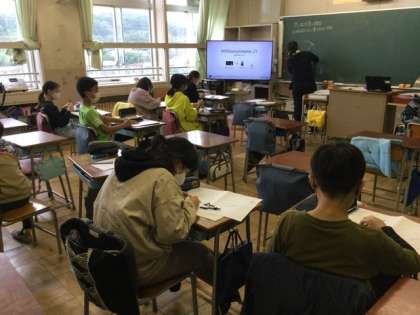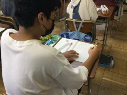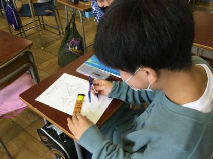 先程、中3の教室で相似な図形の問題演習をしていました。