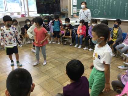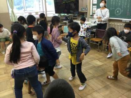 5校時、レクをしています。