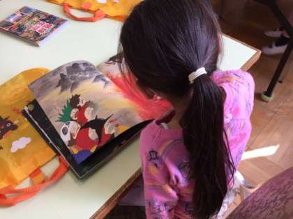借りた本を熱心に読んでいます。