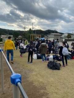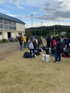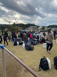 移動教室が終わって学校に帰ってきました。みんな疲れていますが、笑顔です。