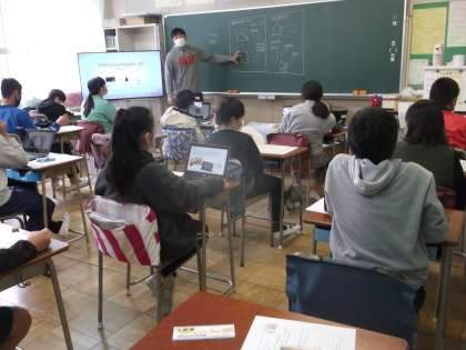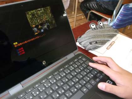 移動教室のまとめの学習として、パソコンか手書きで新聞を作成します。