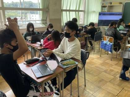 タブレットで「うれしさ」について、各自の意見を挙げています。p