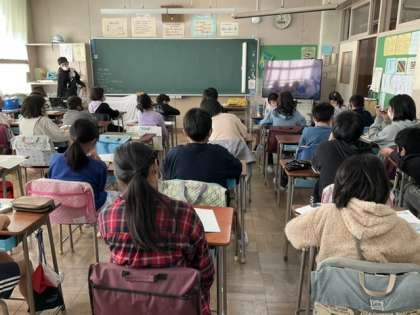 4校時、復習として自動車づくりの動画を見ています。