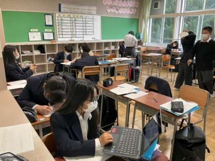 2校時、滝山城址校外学習でお世話になった方へのお礼状を書いていました。