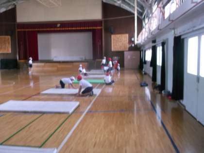 幅跳びの助走と踏切のタイミングを練習しています。