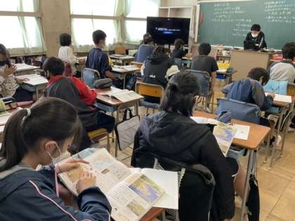 3校時、ポルトガルとスペインとの貿易について学習しています。