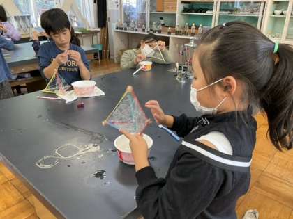 3校時、理科室で活動中です。