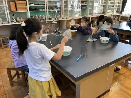 今日の授業では、保護者の方がお手伝いしてくれています。