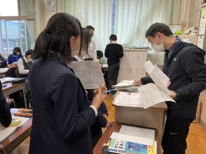 4校時、相似な図形の面積と体積の問題演習をしていました。