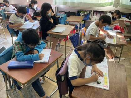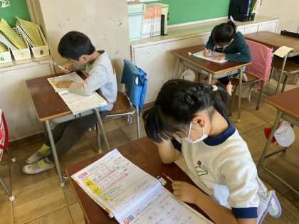 1校時、漢字の学習をしています。