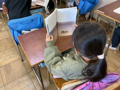 担任が、音読をしています。