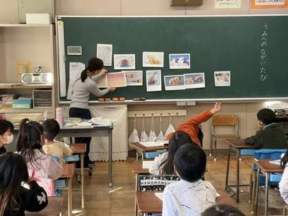 2校時、「うみへの ながい たび」と言う単元です。