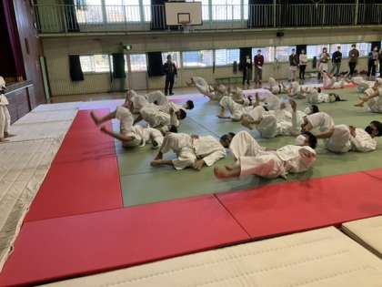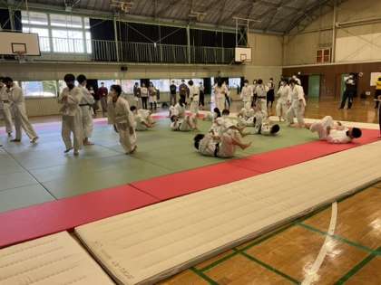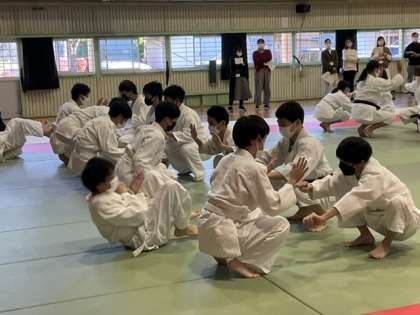この授業は研究授業で、小・中学校の全先生が参観しています。