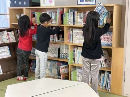 毎回、図書の授業の終わりに、本棚の整理整頓をします。
