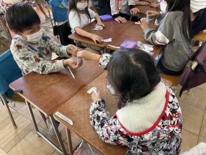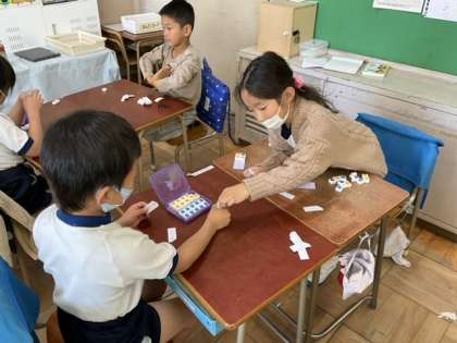 ひき算カードを使ったゲームが始まりました。