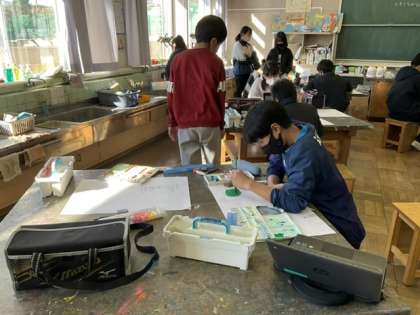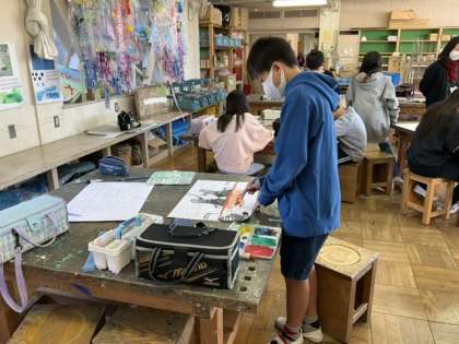 2校時、「わたしの大切な風景」と言う題の絵を描いています。