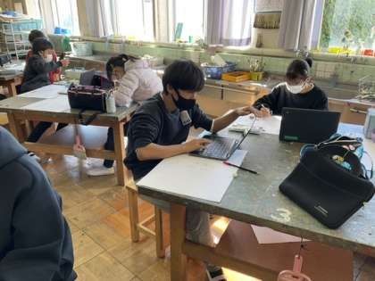 タブレットも活用しながら、下書きをしています。