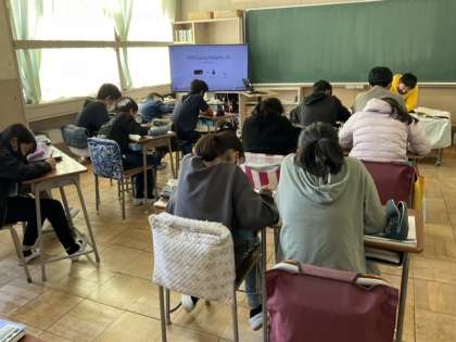 集中して問題を解いています。
