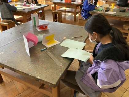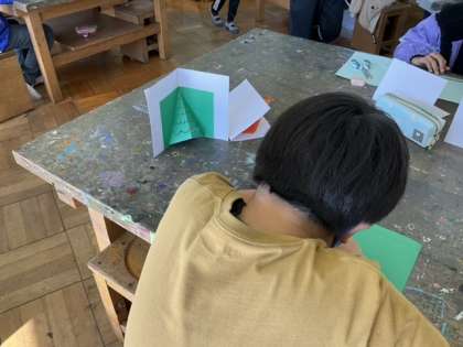 4校時、飛び出す仕組みを使ったカードを作っています。