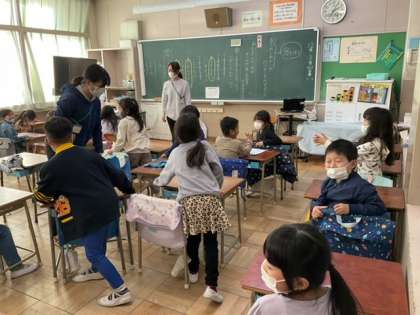 賑やか声が聞こえてきたため、教室に行くと席替えをしていました。