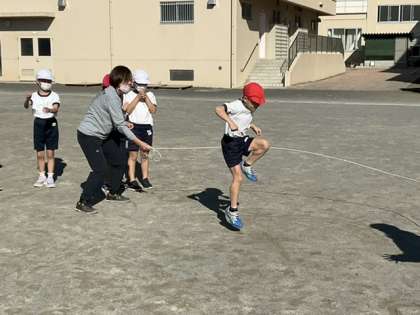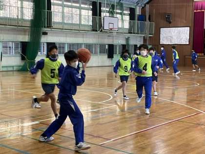 体育では、大縄跳び、持久走、バスケットボールで元気いっぱい運動をしています。