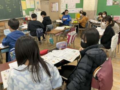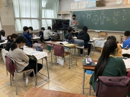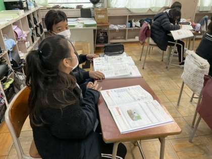 2校時、寒い日の服の着方や過ごし方について学習しています。