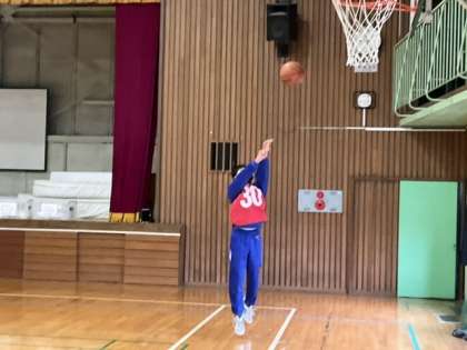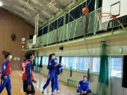 1校時、体育館でバスケットボールです。
