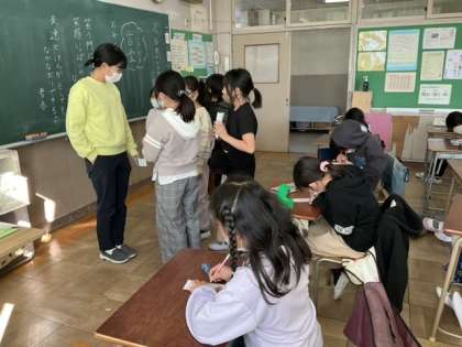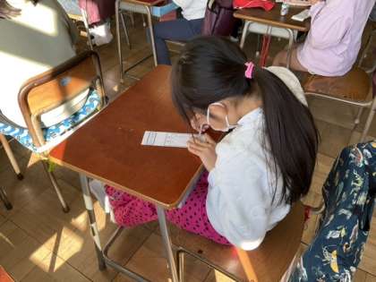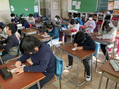 3校時、大吉のおみくじに「どんな良いことがあるか」を書いています。