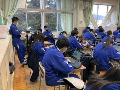 3校時、ゴミの処理について調べています。