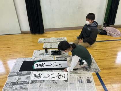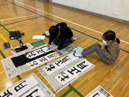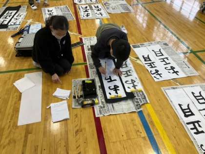 3校時、体育館dr席書きをしています。
