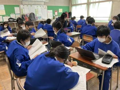 中学部では、鎌倉校外学習や入試しに向けてタブレットでリート検索をしていました。